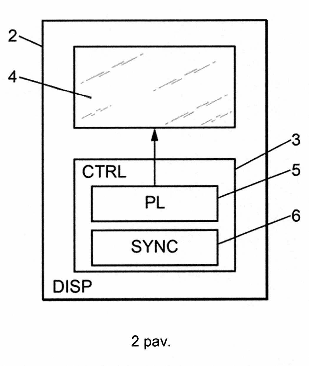 [0056] Kaip parodyta 2 pav., kiekvienas skaitmeninio vaizdavimo įrenginys 2 (DISP) apima tokį valdymo prietaisą 3 (CTRL) kaip mikrokompiuteris ar pan., kuris valdo skaitmeninį ekraną 4.