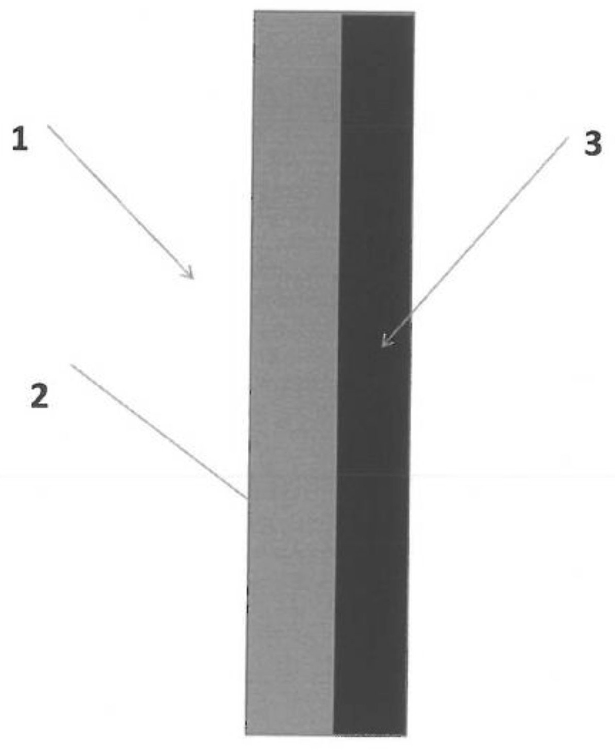 [0015] Brėžinyje pavaizduota garso izoliacinė plokštė modelis SW pagal išradimą. Plokštė apima (1) garso izoliacinį sluoksnį (2) ir gipso kartono sluoksnį (3).