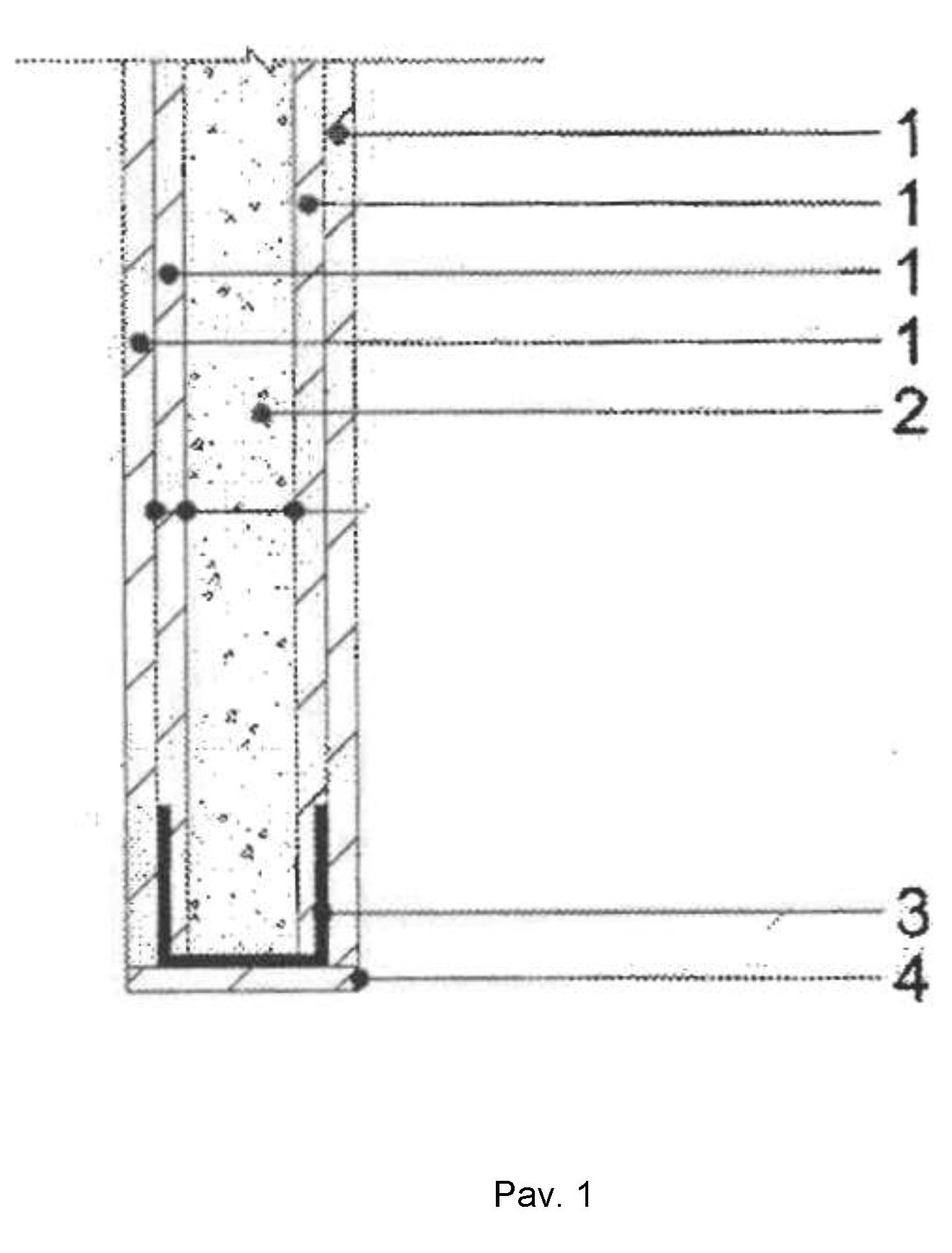 [0016] 1 pav. pavaizduota pertvara su viena vertikalia garsą izoliuojančia plokšte iš maltų granulių.