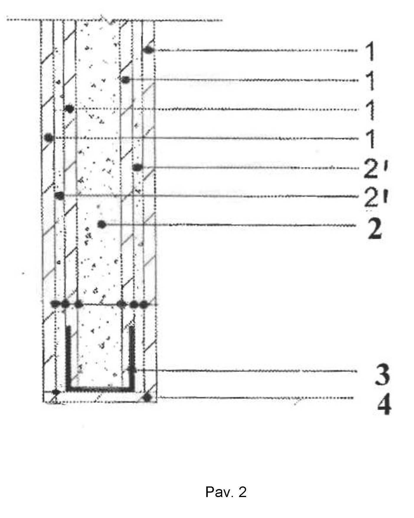 [0006] Šiam techniniam sprendimui būdinga didelė apkrova ir didelis pertvaros storis 200-240 mm, nes ši pertvara apima net kelis storus sluoksnius iš akytbetonio blokų. Tai sumažina buto su tokia pertvara plotą, padidina namo su minėtomis tarpbutinėmis pertvaromis įrengimo kainą ir sumažina pastato su tokiomis tarpbutinėmis pertvaromis statybos darbo našumą.