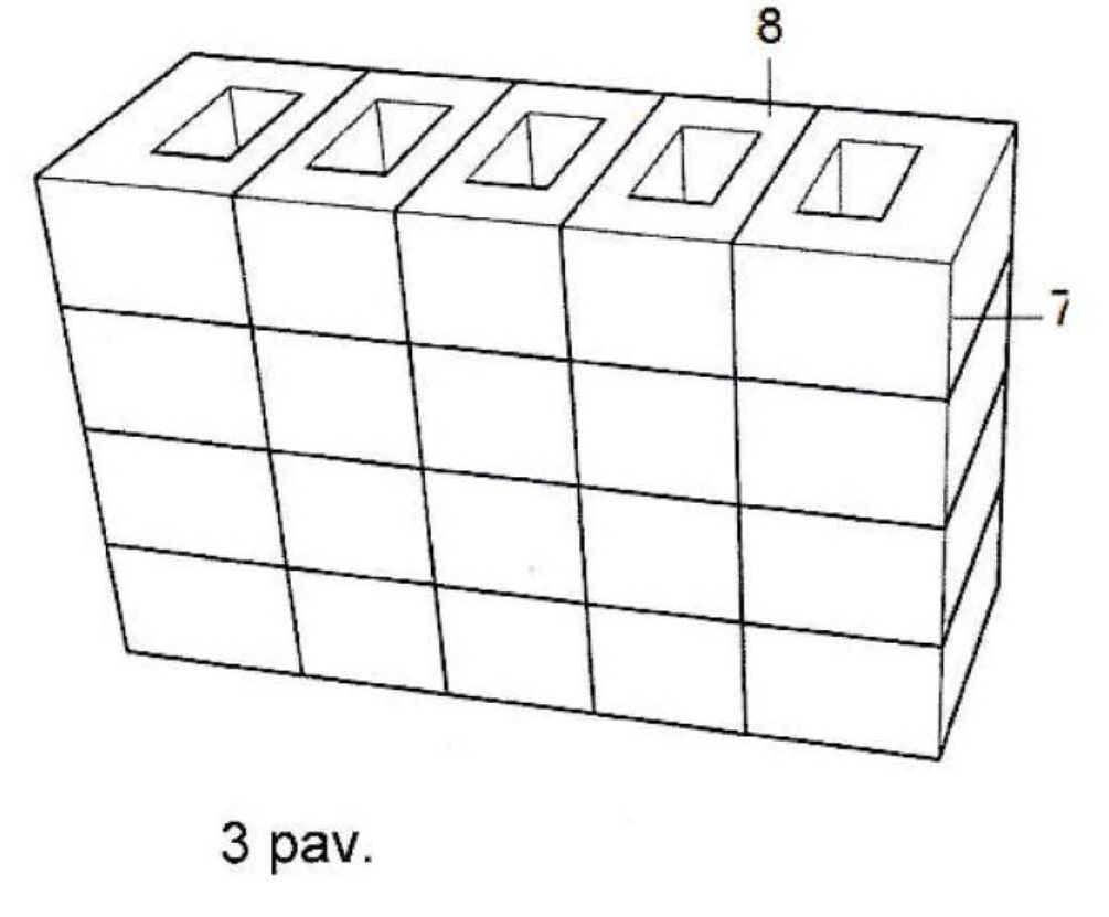[0023] (3) paveiksle pavaizduotas vienas modulinis kaminas su penkiomis dūmtraukio angomis, kurios yra vienos pilnavidurės plytos dydžio.