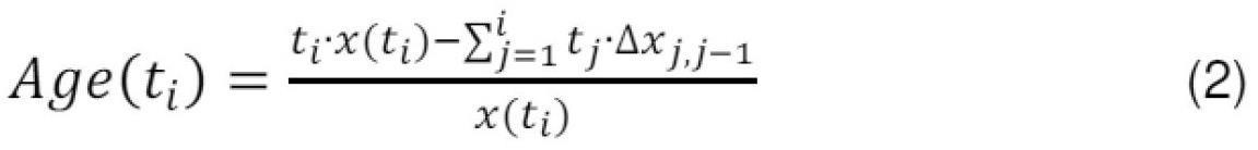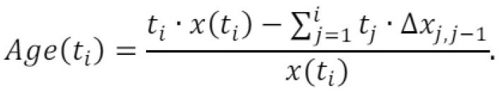 [0076] - pagal formulę (2) - bakterijų populiacijos vidutinis amžius Age(t),