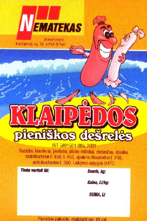 | (540) | NEMATEKAS KLAIPĖDOS pieniškos dešrelės | |