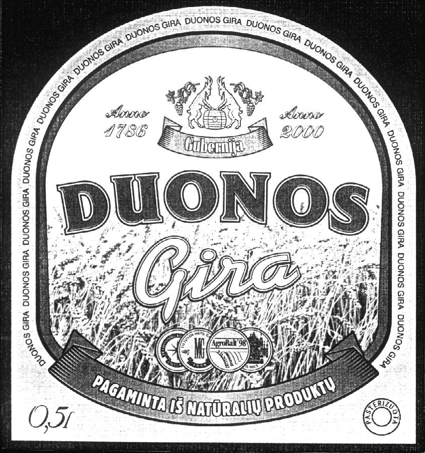 (540) Gubernija DUONOS Gira PAGAMINTA IŠ NATŪRALIŲ PRODUKTŲ