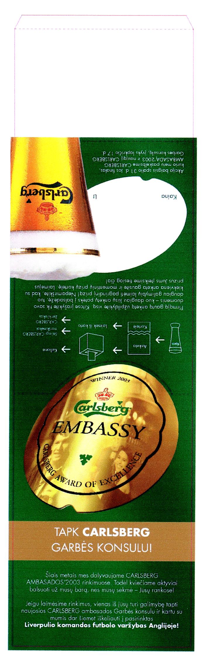| (540) | Carlsberg EMBASSY CARLSBERG AWARD OF EXCELLENCE TAPK CARLSBERG GARBĖS KONSULU! | |