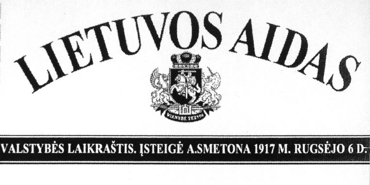 LIETUVOS AIDAS VALSTYBĖS LAIKRAŠTIS. ĮSTEIGĖ A.SMETONA 1917 M.RUGSĖJO 6 D.