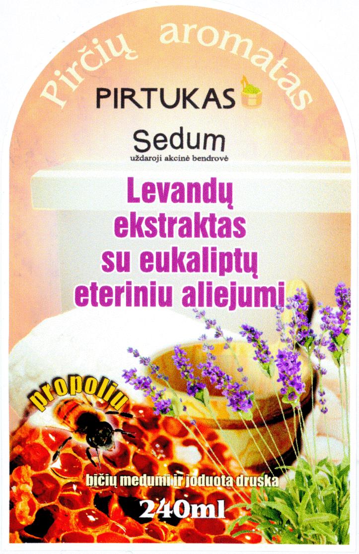 (540) Pirčių aromatas PIRTUKAS Sedum uždaroji akcinė bendrovė Levandų ekstraktas su eukaliptų eteriniu aliejumi propoliu bičių medumi ir joduota druska 240ml
