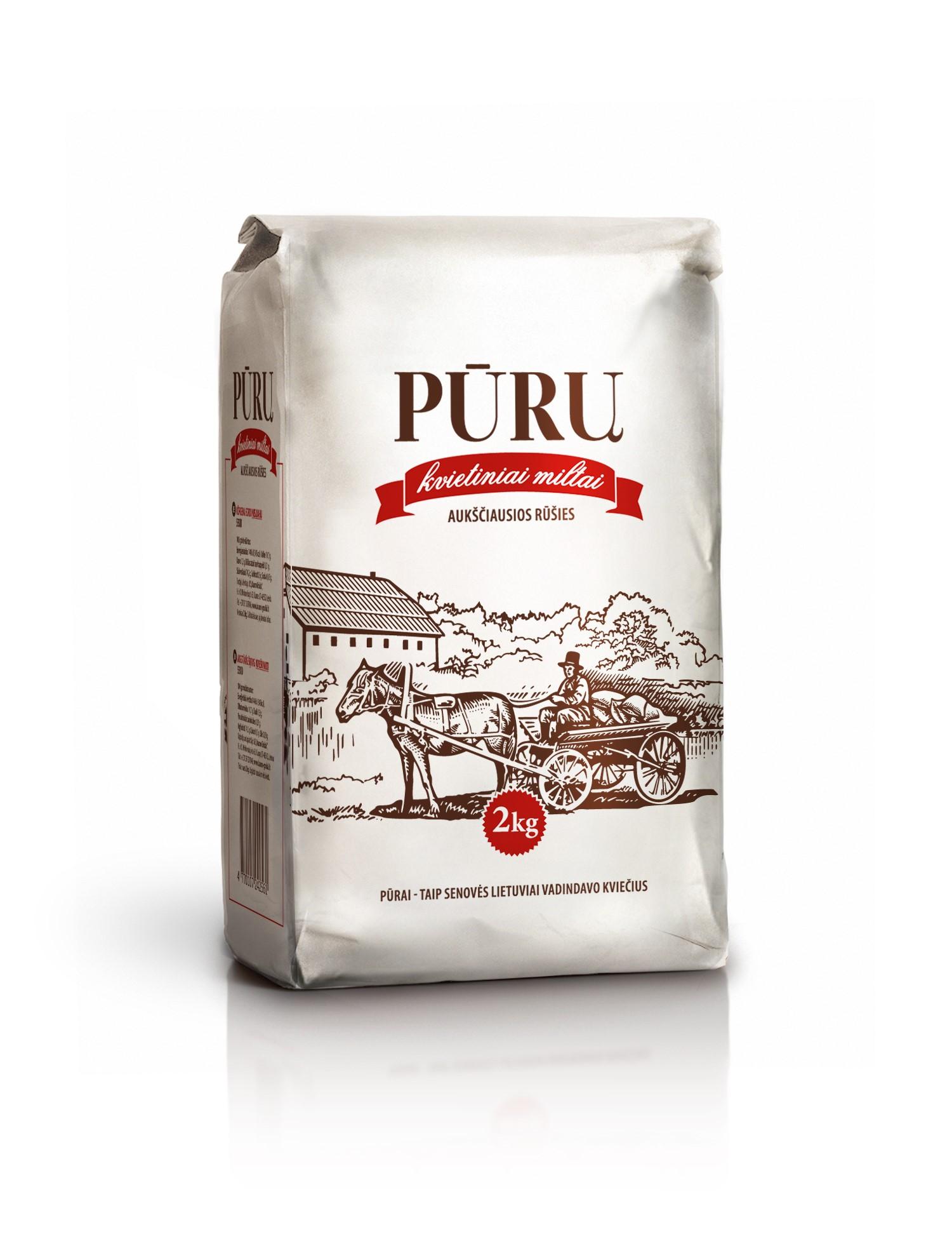 | (540) | PŪRŲ kvietiniai miltai aukščiausios rūšies 2 kg PŪRAI -TAIP SENOVĖS LIETUVIAI VADINDAVO KVIEČIUS | |