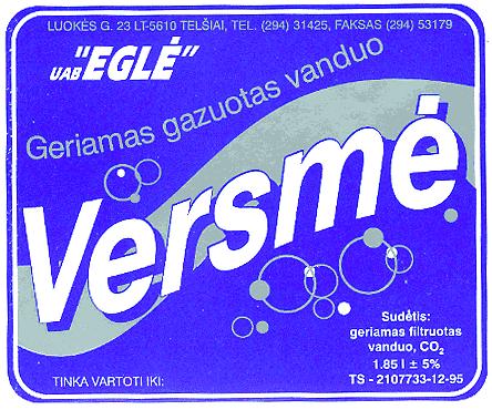 Versmė Geriamas gazuotas vanduo UAB "EGLĖ"